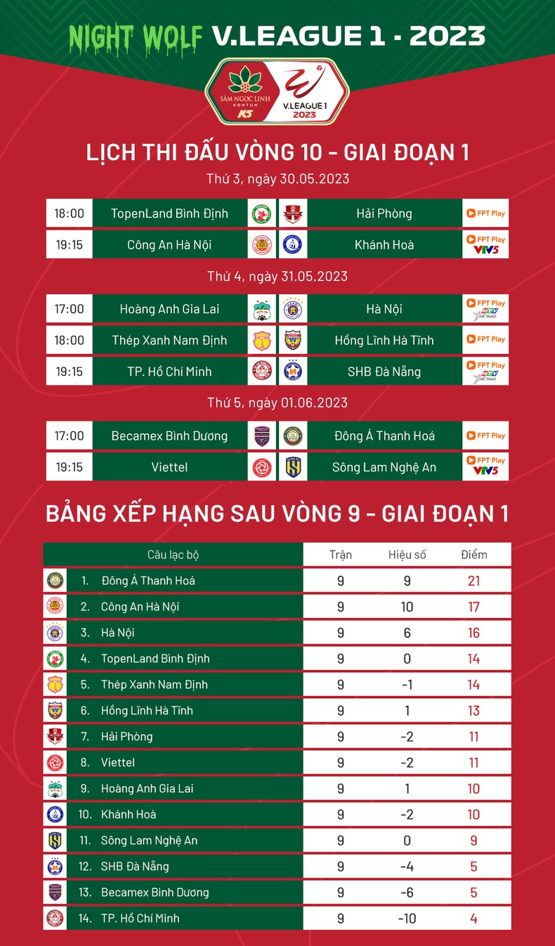 Lịch thi đấu Vòng 10 V-League 2023: Hà Nội đại chiến Hoàng Anh Gia Lai