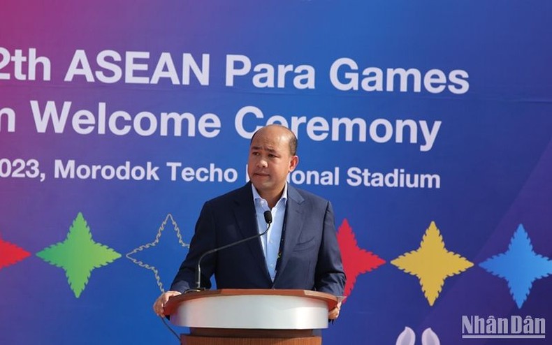 Phát biểu tại sự kiện, ông Hun Many, Chủ tịch Hội Liên hiệp Thanh niên Campuchia (UYFC) kiêm Phó Chủ tịch Ủy ban Paralympic quốc gia Campuchia (NPCC) nhiệt liệt chào mừng các đoàn thể thao của 11 quốc gia Đông Nam Á tham dự đại hội thể thao dành cho các vận động viên khuyết tật do Campuchia lần đầu tiên đăng cai tổ chức.