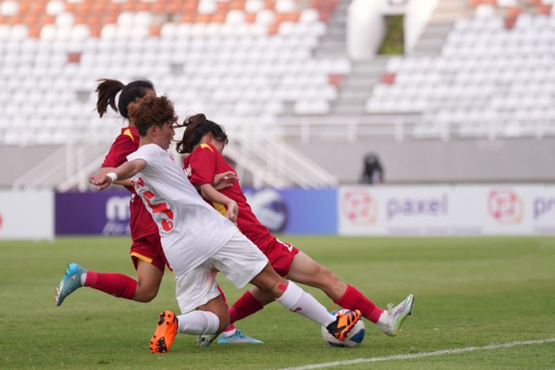 Thủ môn Kiều My và các đồng đội phải làm việc hết công suất với sự tỉnh táo để cản phá một số pha dứt điểm của đối phương. Thế trận giằng co những phút sau đó nhưng vẫn chưa thể đến.