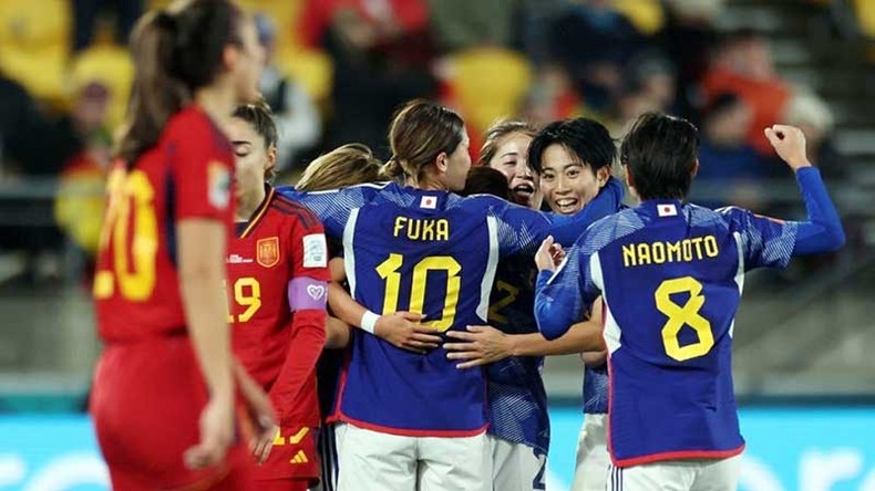 Niềm vui chiến thắng của tuyển nữ Nhật Bản trước Tây Ban Nha.