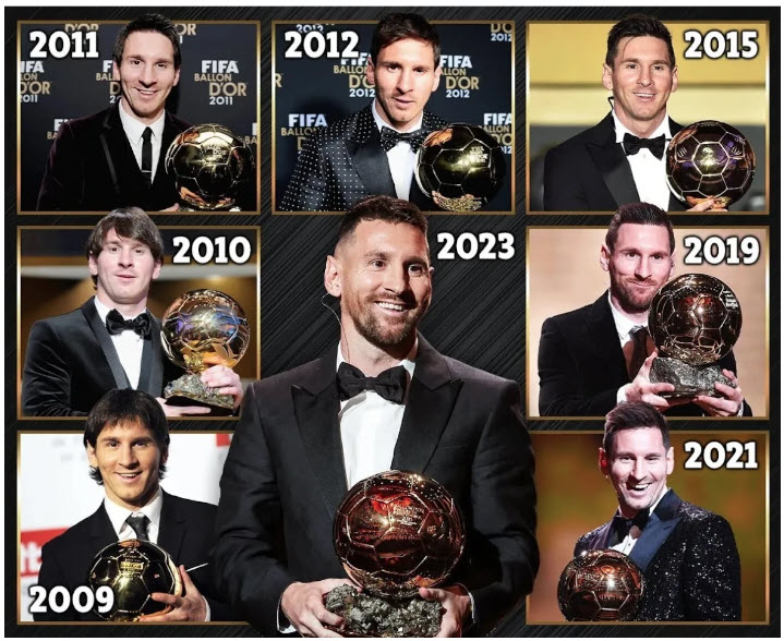 Messi 8 lần giành Quả bóng Vàng.