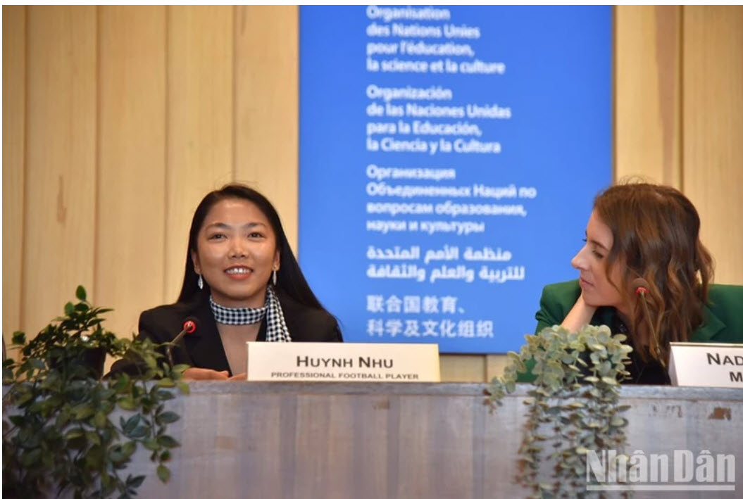 Đại diện duy nhất của Việt Nam tham dự tọa đàm “Bóng đá - Ghi bàn cho phụ nữ” là Huỳnh Như, cầu thủ đội tuyển bóng đá nữ quốc gia và hiện đang thi đấu ở vị trí tiền đạo cho CLB Länk Vilaverdense (Bồ Đào Nha).