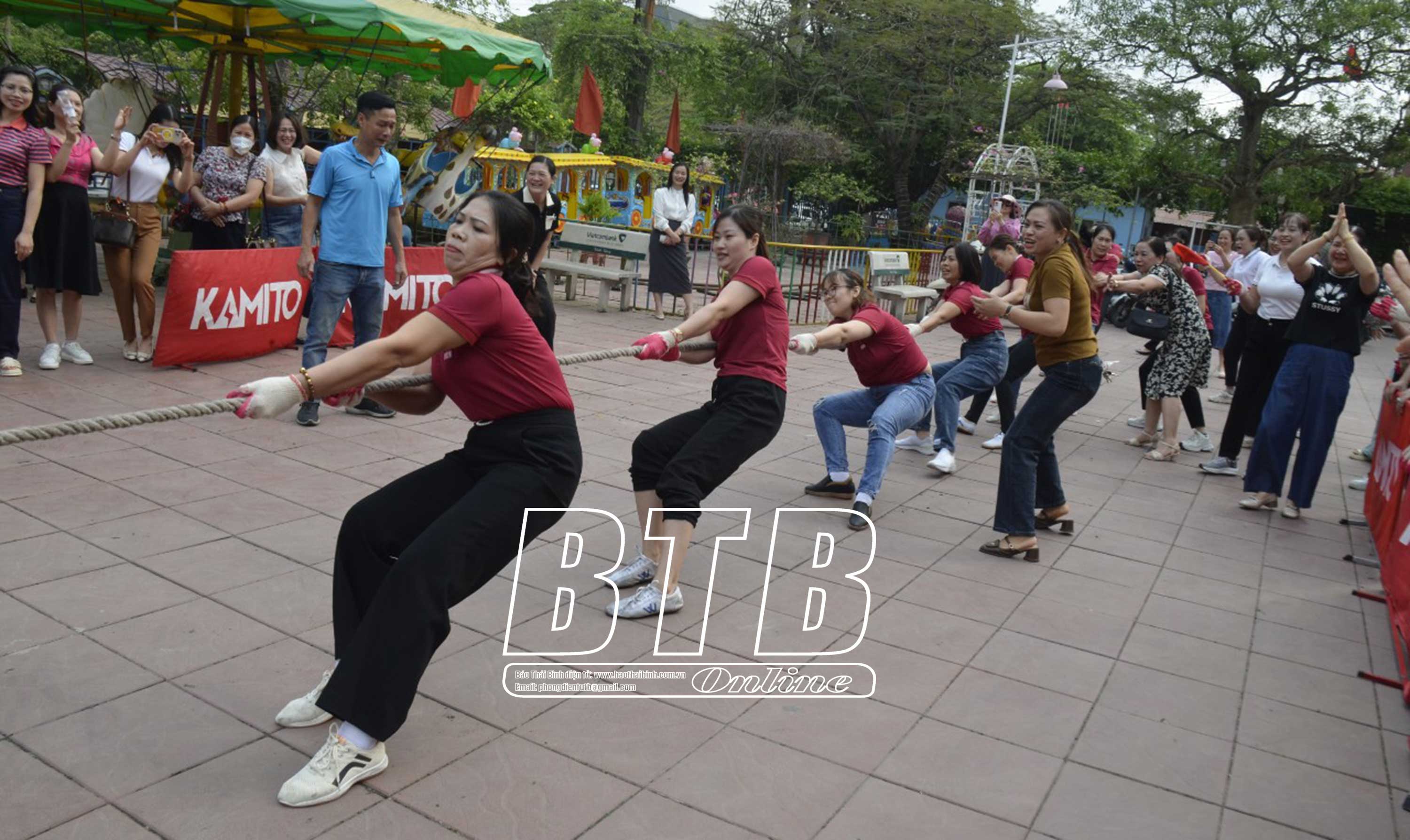 Các cổ động viên nhiệt tình cổ vũ môn kéo co.