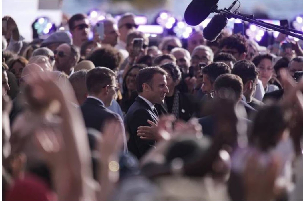 Tổng thống Pháp Emmanuel Macron hòa chung không khí cùng người dân và du khách.