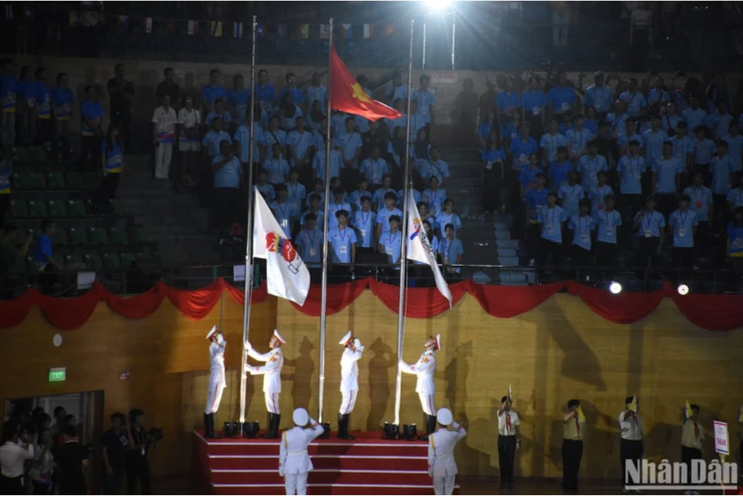Nghi lễ thượng cờ của Hội đồng Thể thao học sinh Đông Nam Á và cờ Đại hội, đánh dấu những ngày hội thể thao sôi động chính thức bắt đầu.