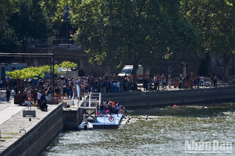 Buổi bơi thử nghiệm trên sông Seine thu hút sự quan tâm của đông đảo công chúng.