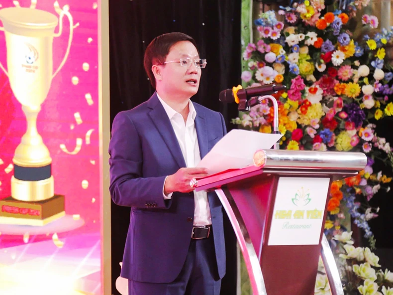 Nhà báo Hồ Minh Chiến, Tổng Biên tập Tạp chí Gia đình Việt Nam, Trưởng Ban tổ chức giải phát biểu bế mạc giải bóng đá Press Cup 2024.