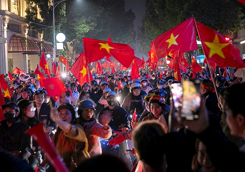 Chiến thắng xứng đáng của đội tuyển bóng đá Việt Nam, đoạt ngôi vô địch ASEAN Cup 2024 đã thổi bùng niềm vui trên khắp cả nước. Tại Hà Nội, ngay sau tiếng còi kết thúc trận đấu, hàng nghìn người đổ ra đường ăn mừng trong tiếng hò reo và cờ Tổ quốc phấp phới trên tay. Các đoàn người đã diễu hành trên ô-tô, xe máy từ các hướng tràn về những trung tâm, ngã tư, quảng trường, tạo ra không khí náo nhiệt sôi động cùng âm thanh kèn, trống và lời ca. Nhiều tốp người tạo thành "dòng sông" cờ đỏ sao vàng cuồn cuộn không dứt trên đường phố Thủ đô. Hàng nghìn người đứng hai bên đường phố hô vang tên đất nước.