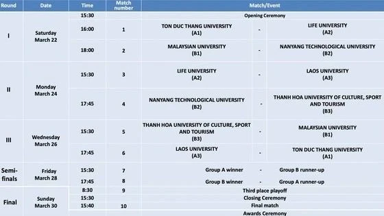 Lịch thi đấu của các đội bóng tham dự giải.