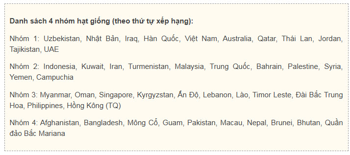 Đội tuyển U23 Việt Nam thuộc nhóm hạt giống số 1 tại Vòng loại U23 châu Á 2026