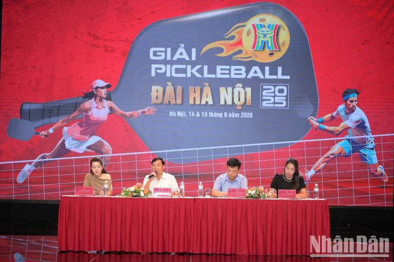 Ban tổ chức "Giải Pickleball Đài Hà Nội 2025" trả lời câu hỏi của các phóng viên tại buổi họp báo.