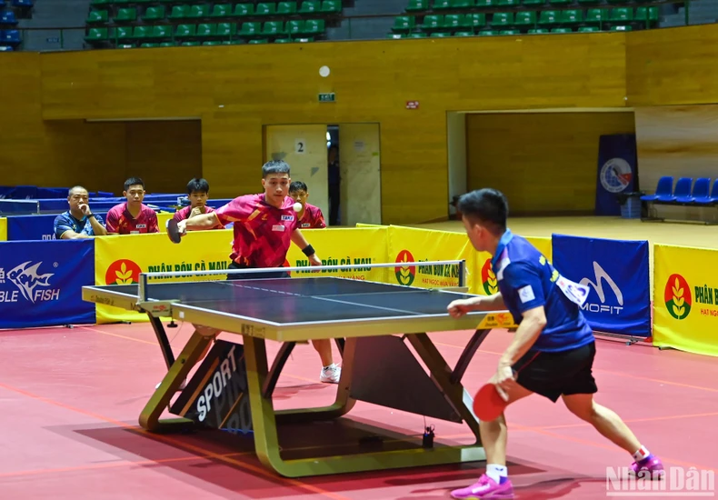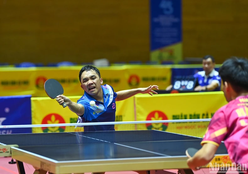 Top 1 bóng bàn Việt Nam Nguyễn Anh Tú (Hà Nội 1) gặp Lê Đình Đức (Công an Nhân dân T&T 1) trong trận đấu thứ hai chung kết đồng đội nam.