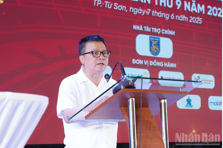 Nhà báo Hồ Minh Chiến - Tổng biên tập Tạp chí Gia đình Việt Nam, Trưởng Ban tổ chức Press Cup 2025 phát biểu tại buổi lễ.