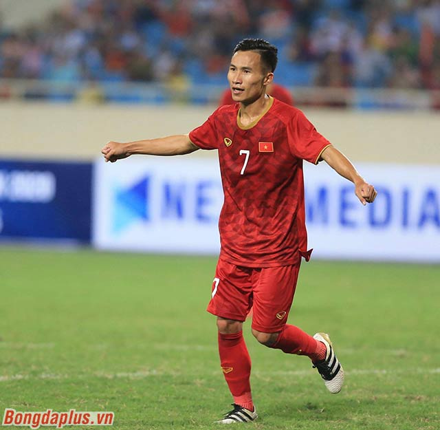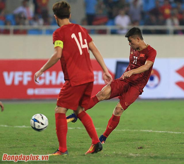Sang hiệp 2, Quang Hải vào sân và được trao lại băng đội trưởng. Anh ghi dấu ấn với đường chuyền cho Việt Hưng ghi bàn - Ảnh: Minh Tuấn