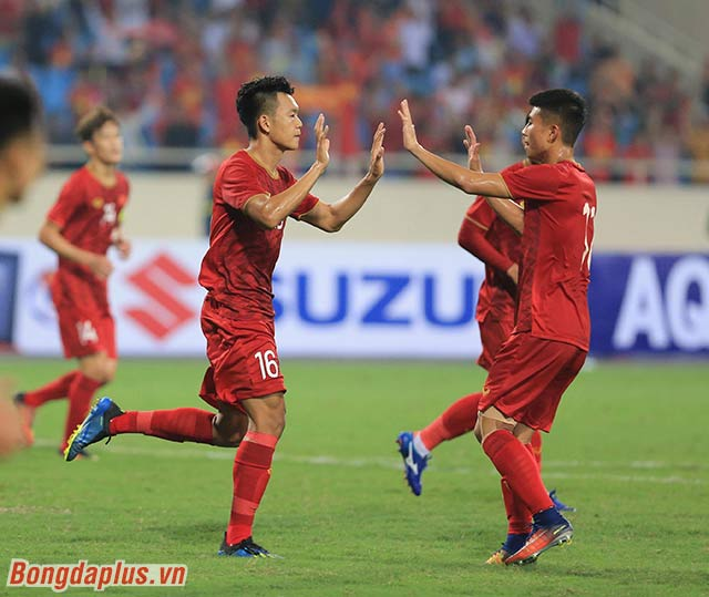 Các cầu thủ U23 Việt Nam khởi đầu suôn sẻ sau 45 phút đầu tiên - Ảnh: Minh Tuấn