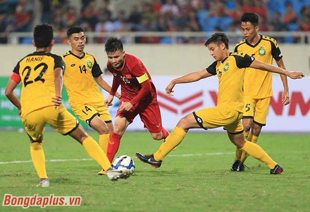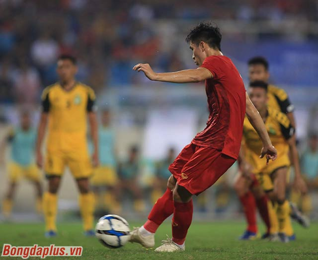 Quang Hải ghi bàn thắng trên chấm phạt đền, qua đó giúp U23 Việt Nam thắng 6-0 U23 Brunei. Đây là cách biệt lớn nhất của U23 Việt Nam dưới thời Park Hang Seo. Điều đáng chú ý là thế hệ cầu thủ mới vừa lập cách biệt lớn với 5 bàn thắng chỉ 1 tuần trước đó - Ảnh: Đức Cường