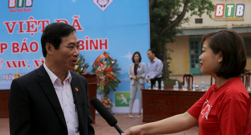 Đại diện lãnh đạo Sở VHTTDL, Phó Trưởng ban thường trực BTC giải trả lời phỏng vấn Báo Thái Bình. Ảnh Thanh Thưởng