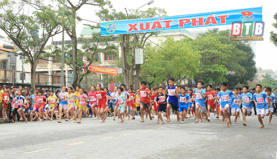 Vận động viên nam, nữ Nhi đồng xuất phát cự ly 2 Km. Ảnh: Thành Tâm