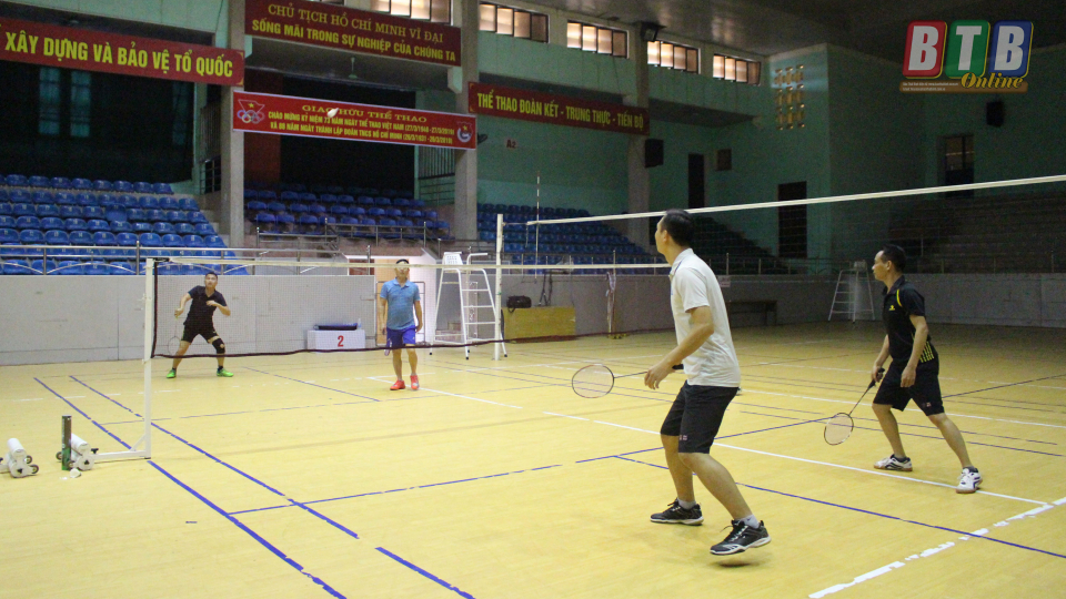 Cán bộ, huấn luyện viên Trung tâm thi đấu giao lưu môn cầu lông sau lễ kỷ niệm.
