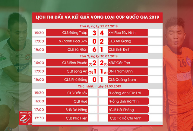 Chiều 30/3, vòng loại cúp Quốc gia 2019 đã diễn ra 3 trận đấu. CLB Quảng Nam, CLB Nam Định và CLB Bình Phước đã giành quyền đi tiếp bằng những trận thắng kịch tính.