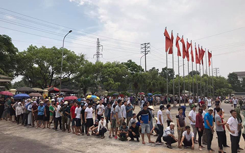 CĐV đến ngày càng đông và đến thời điểm bán vé lúc 14h00 thì có khoảng vài nghìn người xếp hàng đợi mua vé. Khác với cảnh tưởng nhốn nháo khi mua vé các trận đấu lớn của ĐT Việt Nam ở Mỹ Đình trước đây, CĐV Phú Thọ tỏ ra trật tự, xếp hàng ngay ngắn đợi đến lượt dưới sự giám sát, phân luồng của hàng trăm chiến sỹ cảnh sát.