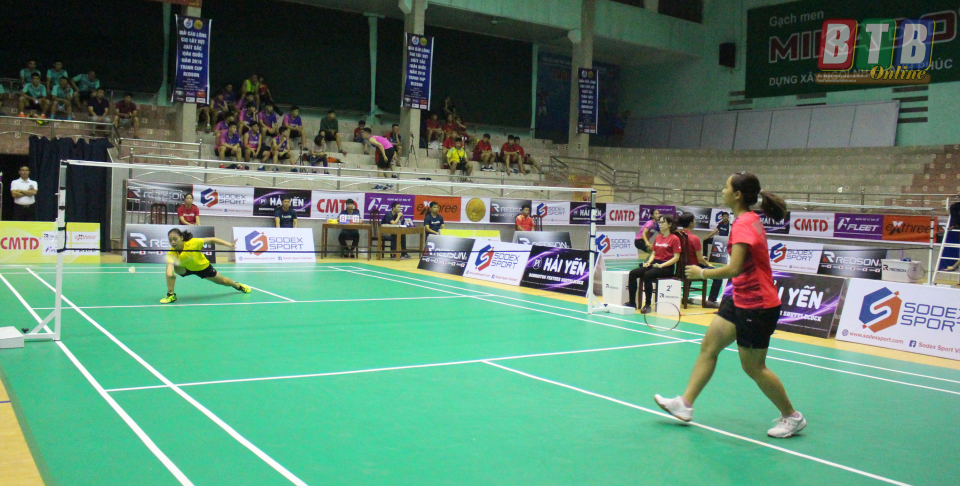 Trận đấu ở nội dung đơn nữ giữa đội Bắc Giang và Thái Bình.