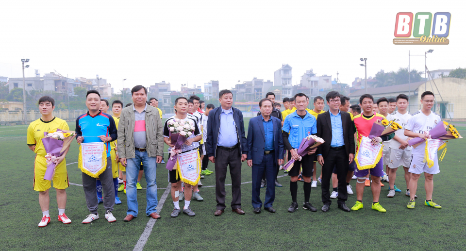 Ban tổ chức tặng hoa và cờ chúc mừng các đội bóng tham gia thi đấu.