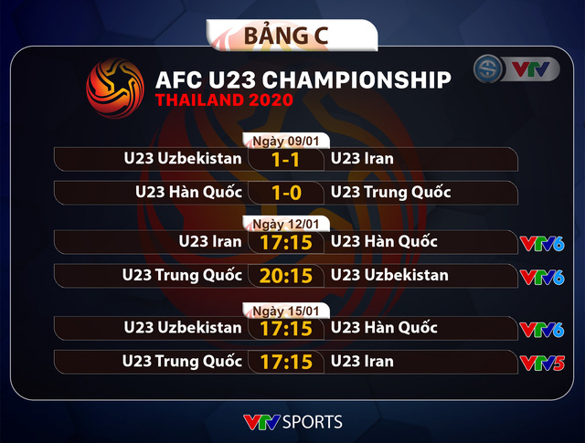 Trận đấu còn lại của bảng C là cuộc đối đầu giữa U23 Trung Quốc và U23 Uzbekistan sẽ diễn ra vào lúc 20h15 hôm nay.
