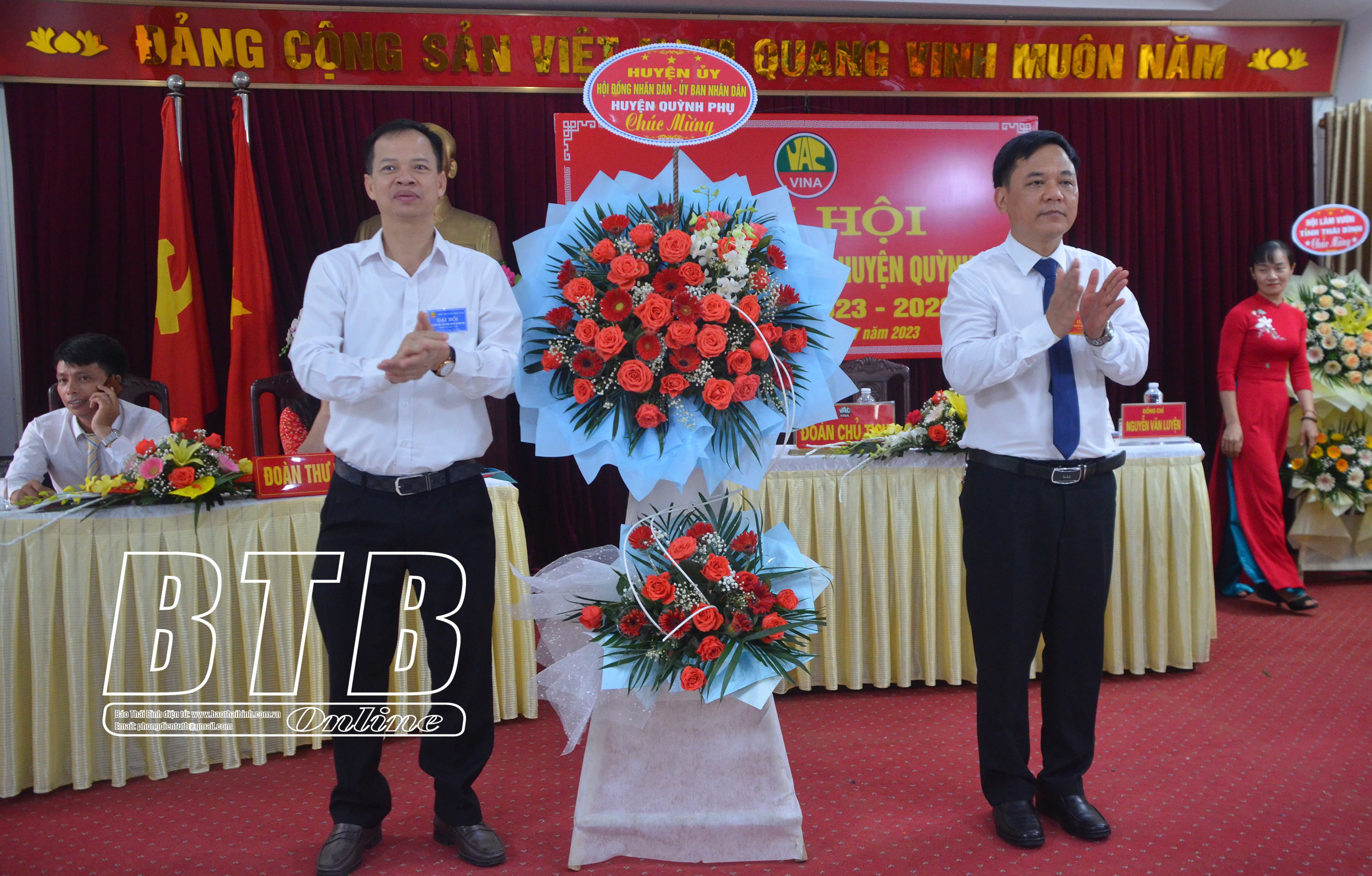 Lãnh đạo huyện Quỳnh Phụ tặng hoa chúc mừng.