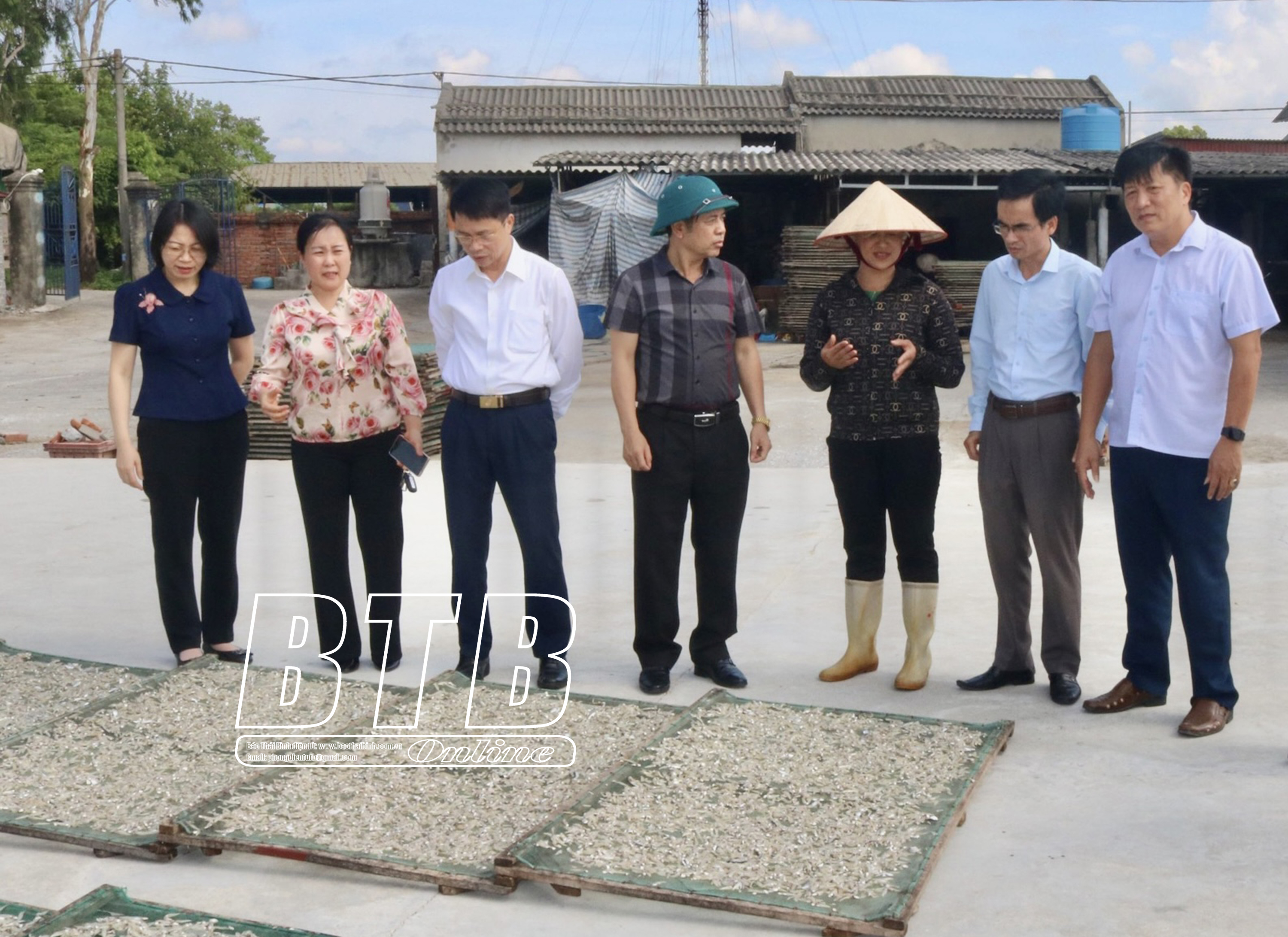 Lãnh đạo Hội Nông dân tỉnh tham quan mô hình chế biến hải sản tại huyện Thái Thụy.