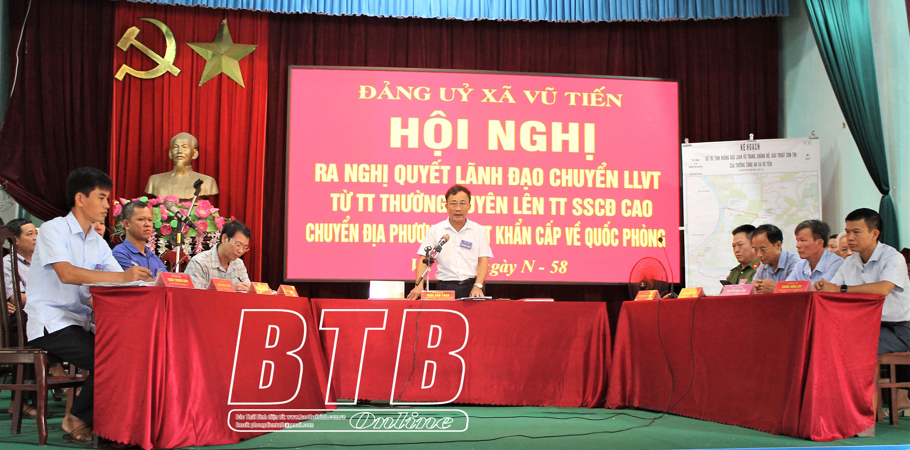 Diễn tập Hội nghị Đảng ủy xã Vũ Tiến ra nghị quyết lãnh đạo chuyển LLVT từ trạng thái SSCĐ thường xuyên lên trạng thái SSCĐ cao, chuyển địa phương vào trạng thái khẩn cấp về quốc phòng.