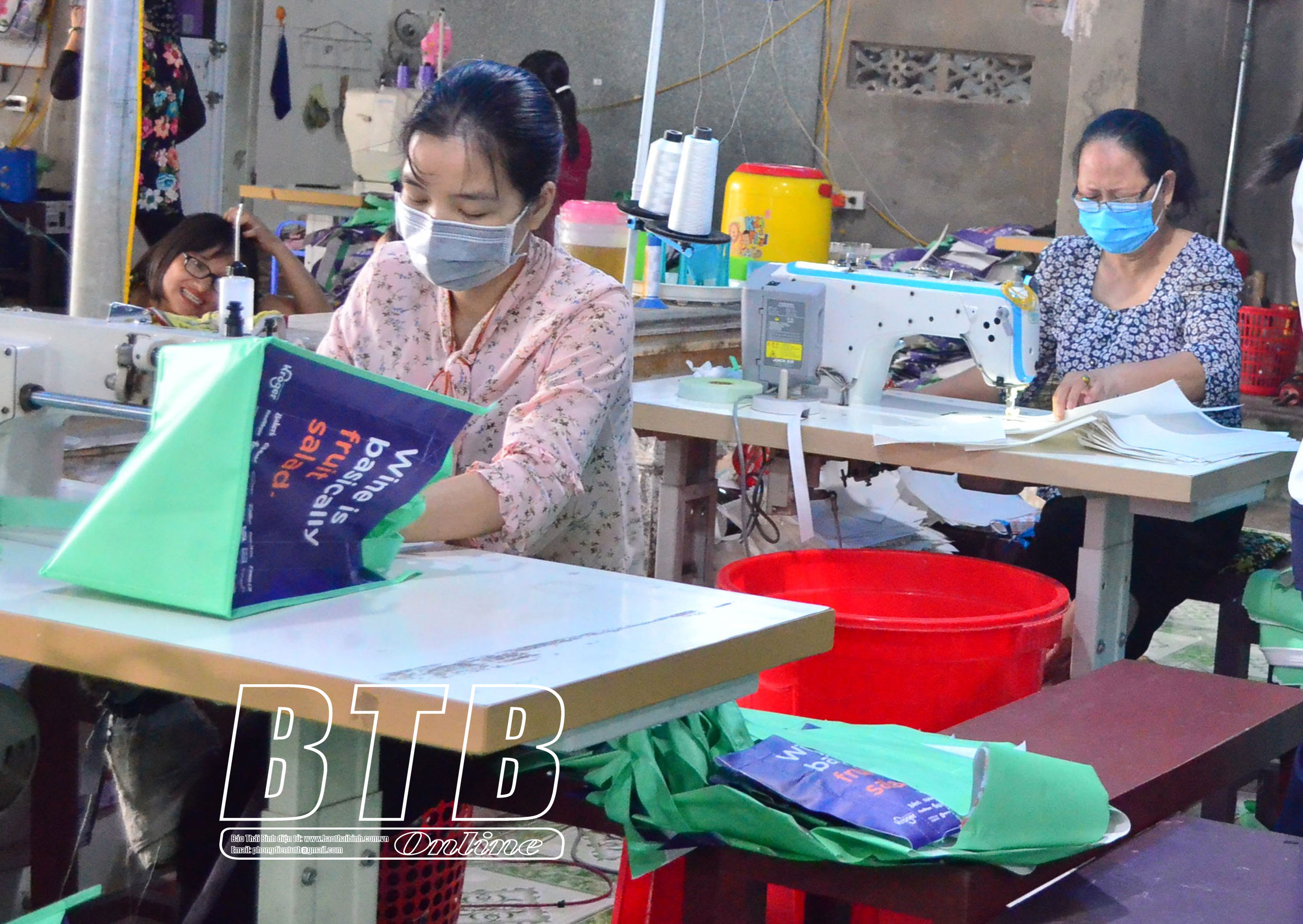 Cơ sở may túi không dệt của chị Vũ Thị Hải Yến, xã An Mỹ (Quỳnh Phụ) cung cấp hàng chục nghìn sản phẩm ra thị trường, góp phần giảm việc sử dụng túi nilon.
