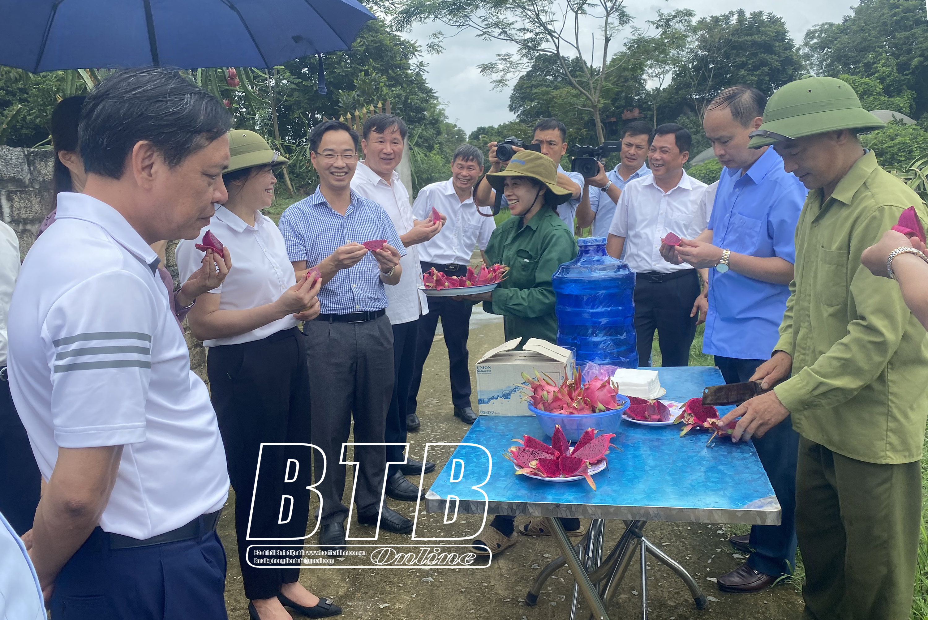 Đoàn công tác huyện Vũ Thư thăm mô hình trồng thanh long ruột đỏ tại xã Tràng Xá.