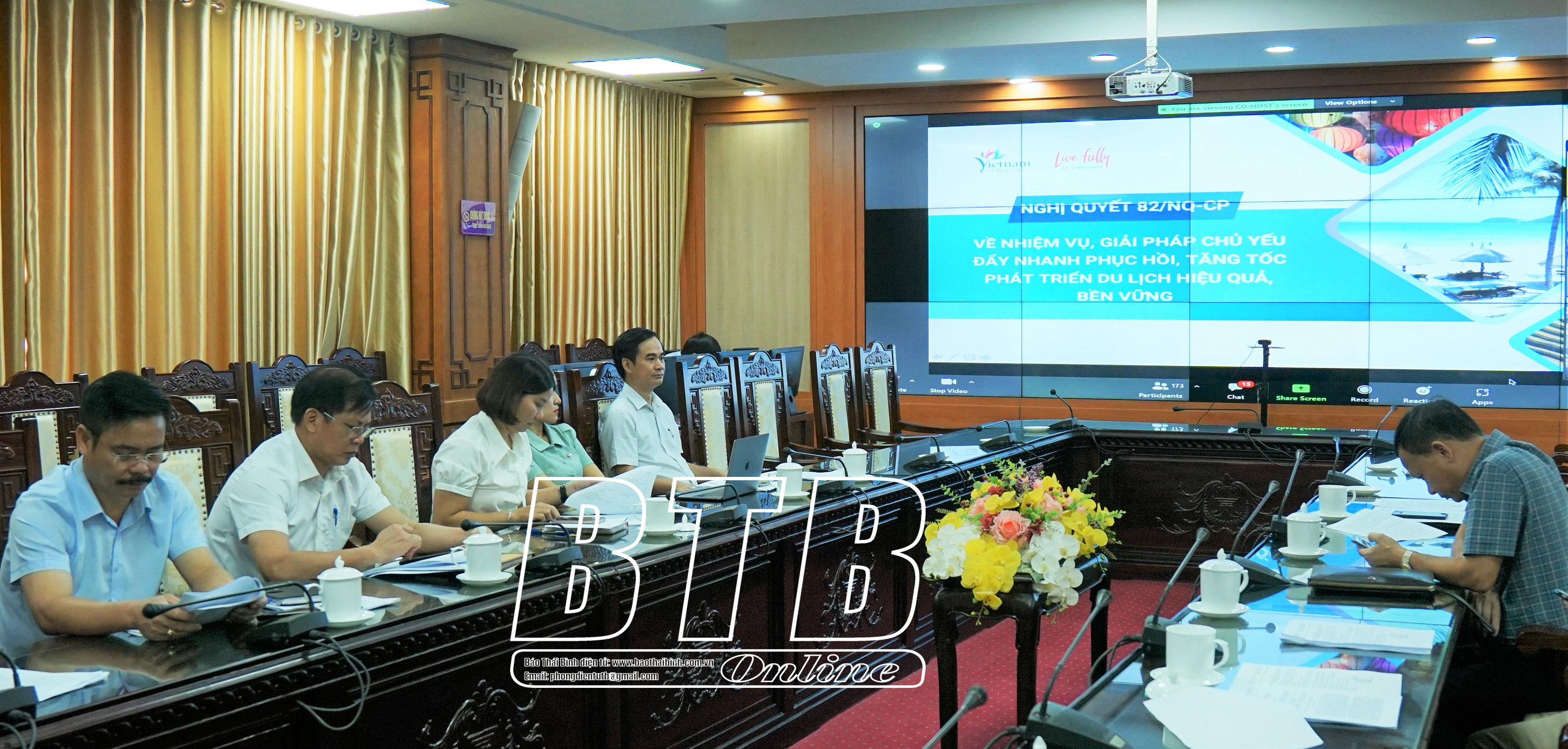 Các đại biểu dự hội nghị trực tuyến.