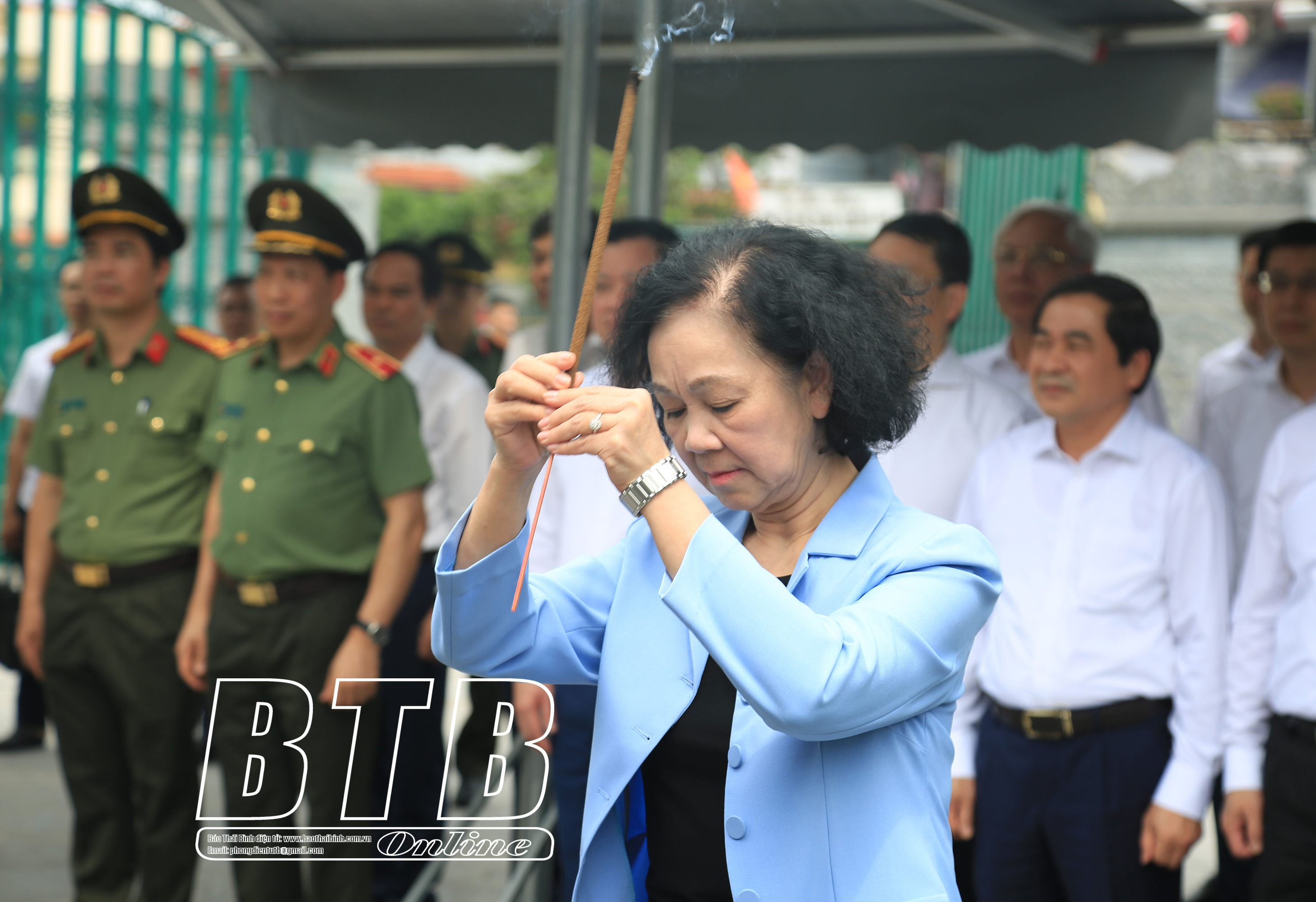 Đồng chí Trương Thị Mai, Ủy viên Bộ Chính trị, Thường trực Ban Bí thư, Trưởng ban Tổ chức Trung ương cùng các đồng chí lãnh đạo Trung ương, lãnh đạo tỉnh Thái Bình dâng hương, tưởng niệm đồng chí Nguyễn Đức Cảnh tại khu lưu niệm đồng chí Nguyễn Đức Cảnh.