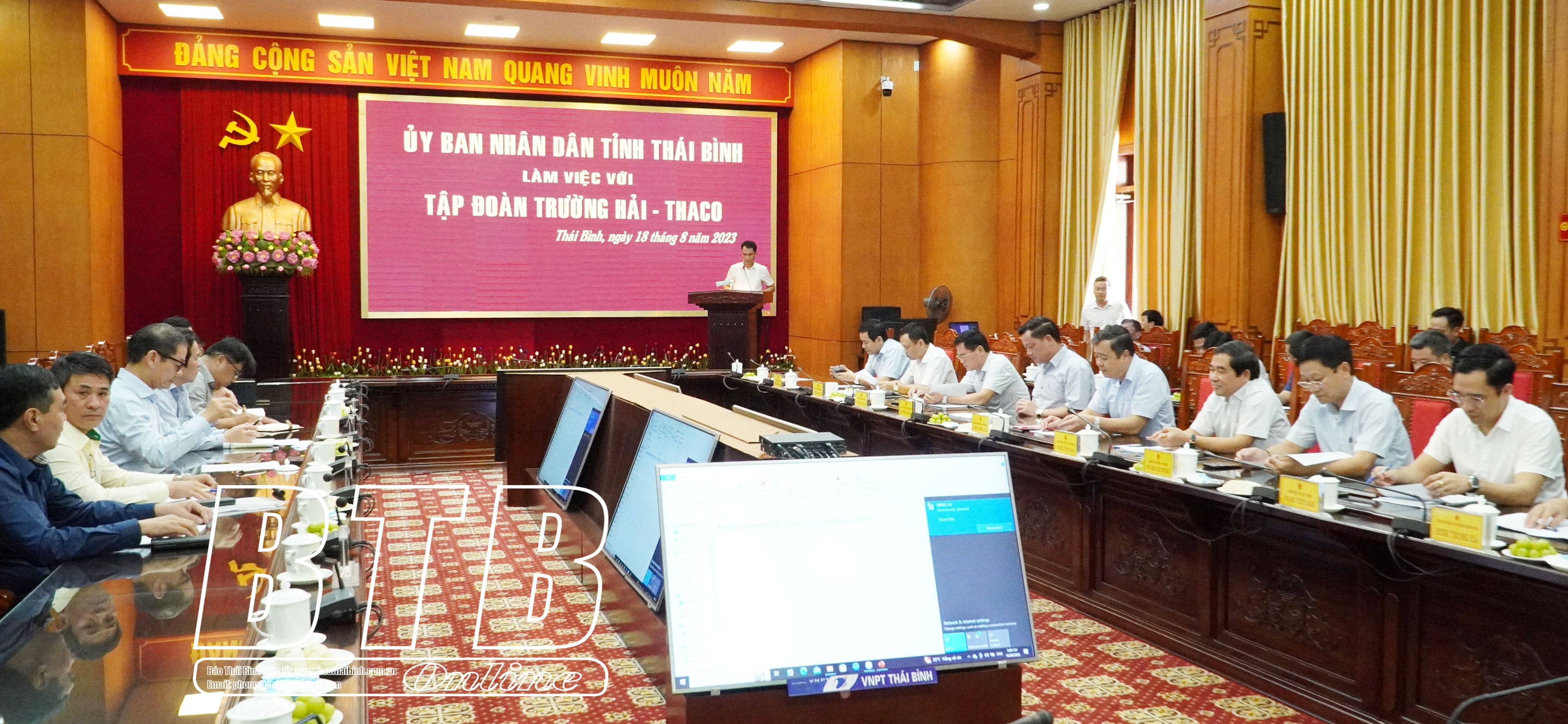 Chiều ngày 18/8, UBND tỉnh tổ chức buổi làm việc với Tập đoàn Trường Hải – Thaco để nghe nhà đầu tư báo cáo tình hình và kế hoạch triển khai đầu tư hạ tầng khu công nghiệp (KCN) Thaco – Thái Bình.
