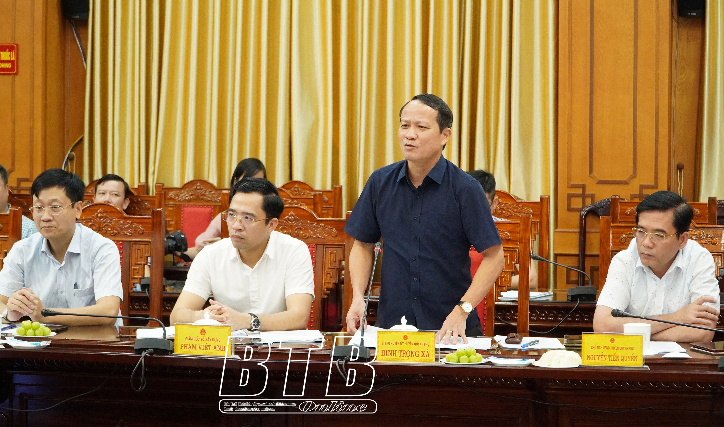 Lãnh đạo huyện Quỳnh Phụ phát biểu tại buổi làm việc.