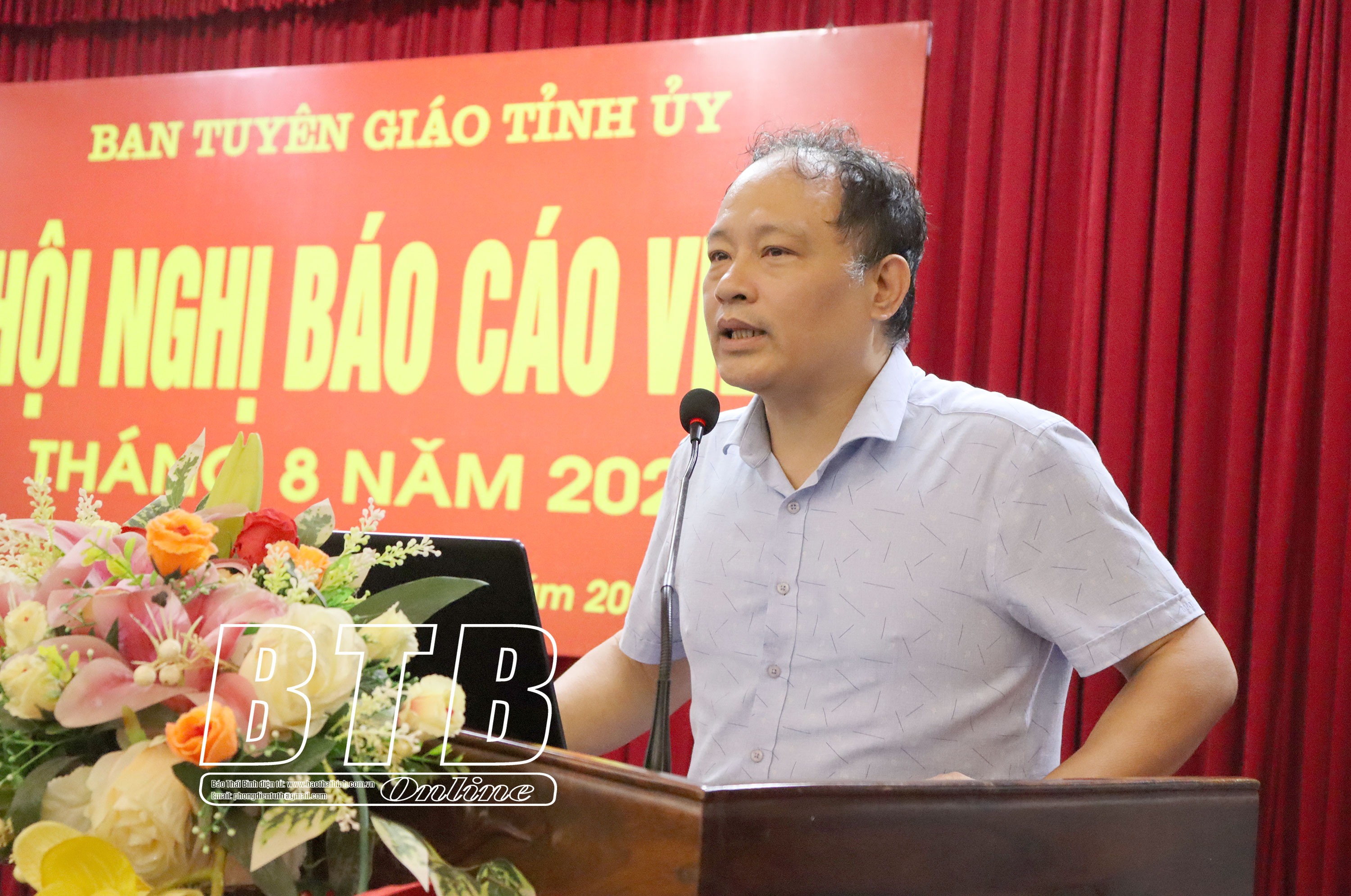 Sáng ngày 25/8, Ban Tuyên giáo Tỉnh ủy tổ chức hội nghị báo cáo viên tháng 8/2023 và định hướng công tác tuyên truyền trong thời gian tới. Đồng chí Phạm Đồng Thụy, Ủy viên Ban Thường vụ, Trưởng ban Tuyên giáo Tỉnh ủy dự hội nghị.