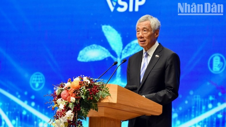 Thủ tướng Lý Hiển Long khẳng định, Singapore rất vui mừng và vinh dự được đóng góp vào sự phát triển của Việt Nam thời gian qua. 10 năm trước, ông đã khởi công dự lễ khởi công VSIP Quảng Ngãi, VSIP thứ 5 ở thời điểm đó và từ đó, các khu VSIP đã tiếp tục phát triển mạnh mẽ với 13 khu ở 9 tỉnh, thành phố trên khắp bắc, trung, nam của Việt Nam, thu hút được tổng vốn đầu tư 18 tỷ USD và tạo ra 300 nghìn việc làm.