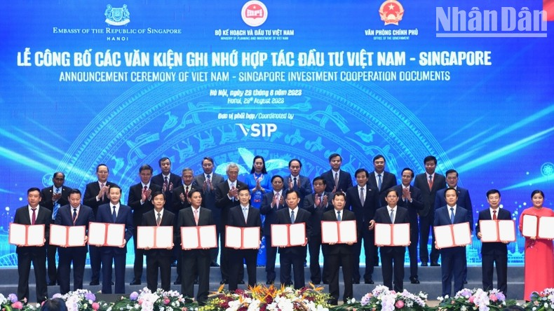 Tại Hội nghị, các nhà lãnh đạo đã chứng kiến lễ công bố các văn kiện ghi nhớ hợp tác đầu tư Việt Nam-Singapore, trong đó, có biên bản hợp tác phát triển 12 dự án VSIP mới tại các địa phương của Việt Nam (Nam Định, Khánh Hòa, Ninh Bình, Hải Phòng, Tây Ninh, Hải Dương, Thanh Hóa, Hà Tĩnh, Thừa Thiên Huế, Bình Phước, Quảng Ngãi, Thái Bình).
