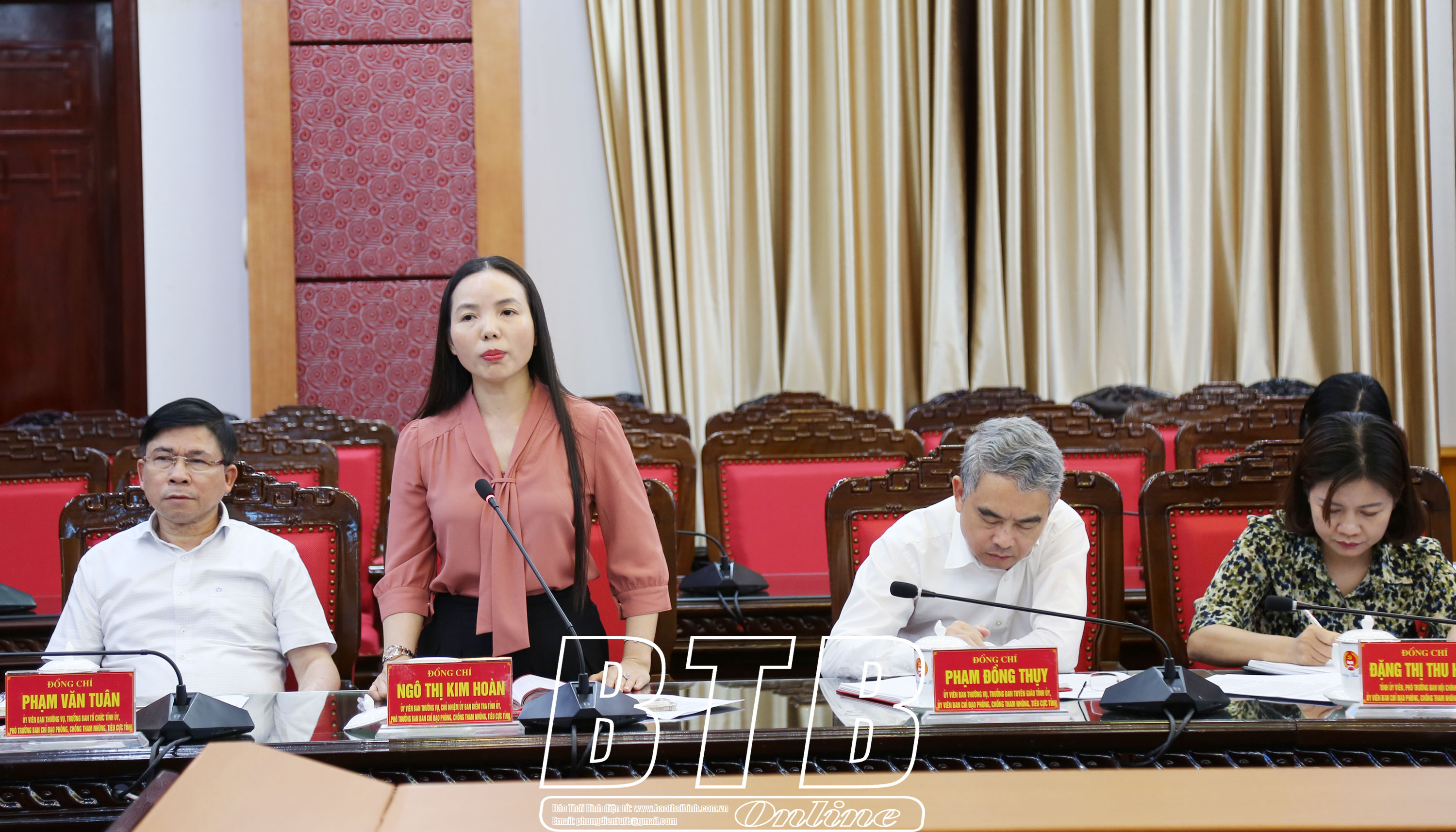 Đồng chí Ngô Thị Kim Hoàn, Ủy viên Ban Thường vụ, Chủ nhiệm Ủy ban Kiểm tra Tỉnh ủy phát biểu tại phiên họp.