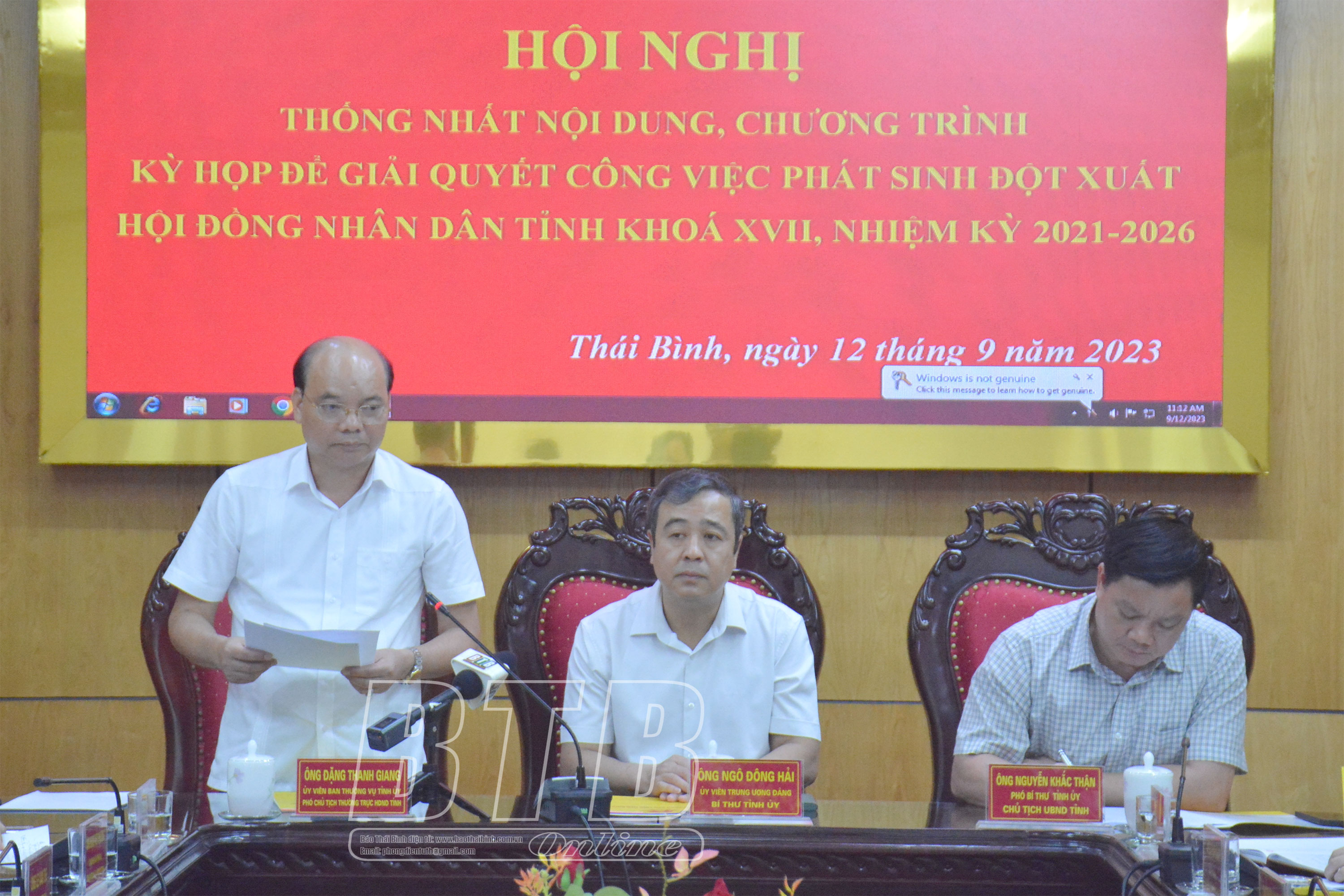 Các đồng chí: Ngô Đông Hải, Ủy viên Ban Chấp hành Trung ương Đảng, Bí thư Tỉnh ủy; Nguyễn Khắc Thận, Phó Bí thư Tỉnh ủy, Chủ tịch UBND tỉnh; Đặng Thanh Giang, Ủy viên Ban Thường vụ Tỉnh ủy, Phó Chủ tịch thường trực HĐND tỉnh chủ trì hội nghị. Dự hội nghị có các đồng chí lãnh đạo HĐND, UBND tỉnh, Ủy ban MTTQ tỉnh và một số ngành, đơn vị của tỉnh.