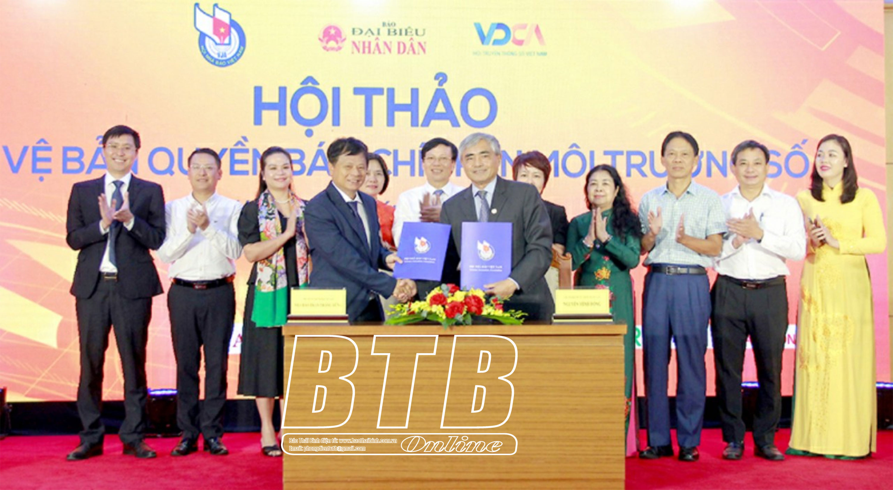 Trong khuôn khổ hội thảo diễn ra lễ ký kết thỏa thuận hợp tác giữa Hội Nhà báo Việt Nam và Hội Truyền thông số Việt Nam về “Nâng cao năng lực, kiến thức thực thi pháp luật bản quyền, phổ biến kiến thức và đạo đức văn hóa cơ quan báo chí trong thực thi bảo vệ bản quyền tác phẩm báo chí”.
