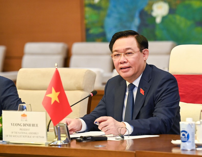 Chủ tịch Quốc hội Vương Đình Huệ phát biểu tại buổi tiếp. (Ảnh: Duy Linh).