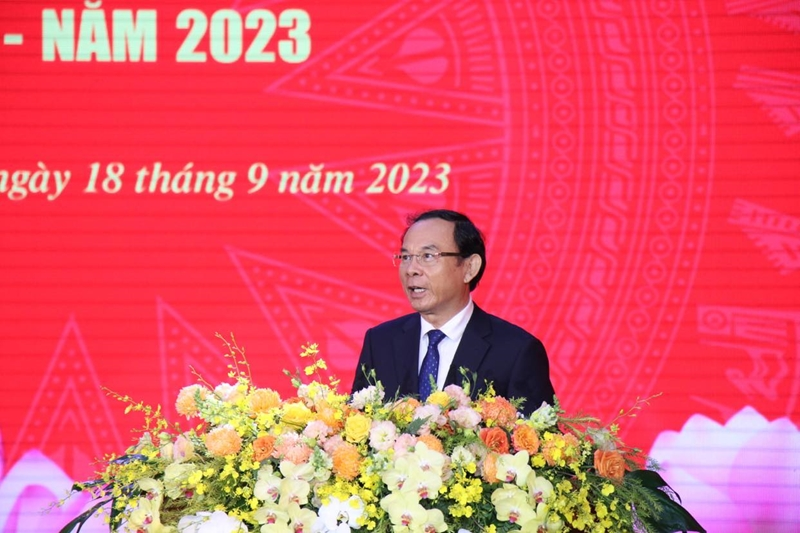 Ủy viên Bộ Chính trị, Bí thư Thành ủy Thành phố Hồ Chí Minh Nguyễn Văn Nên phát biểu tại Lễ khai mạc Hội thi.