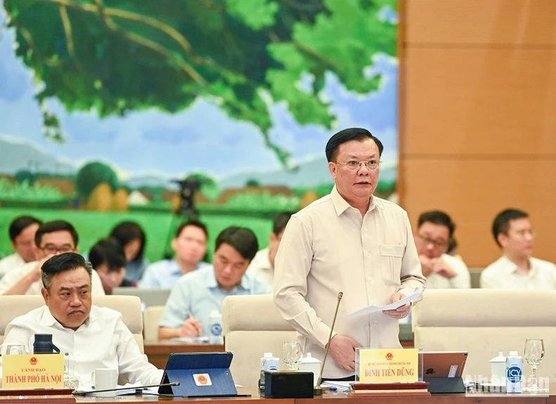 Bí thư Thành ủy Hà Nội Đinh Tiến Dũng giải trình, làm rõ một số nội dung. (Ảnh: DUY LINH).