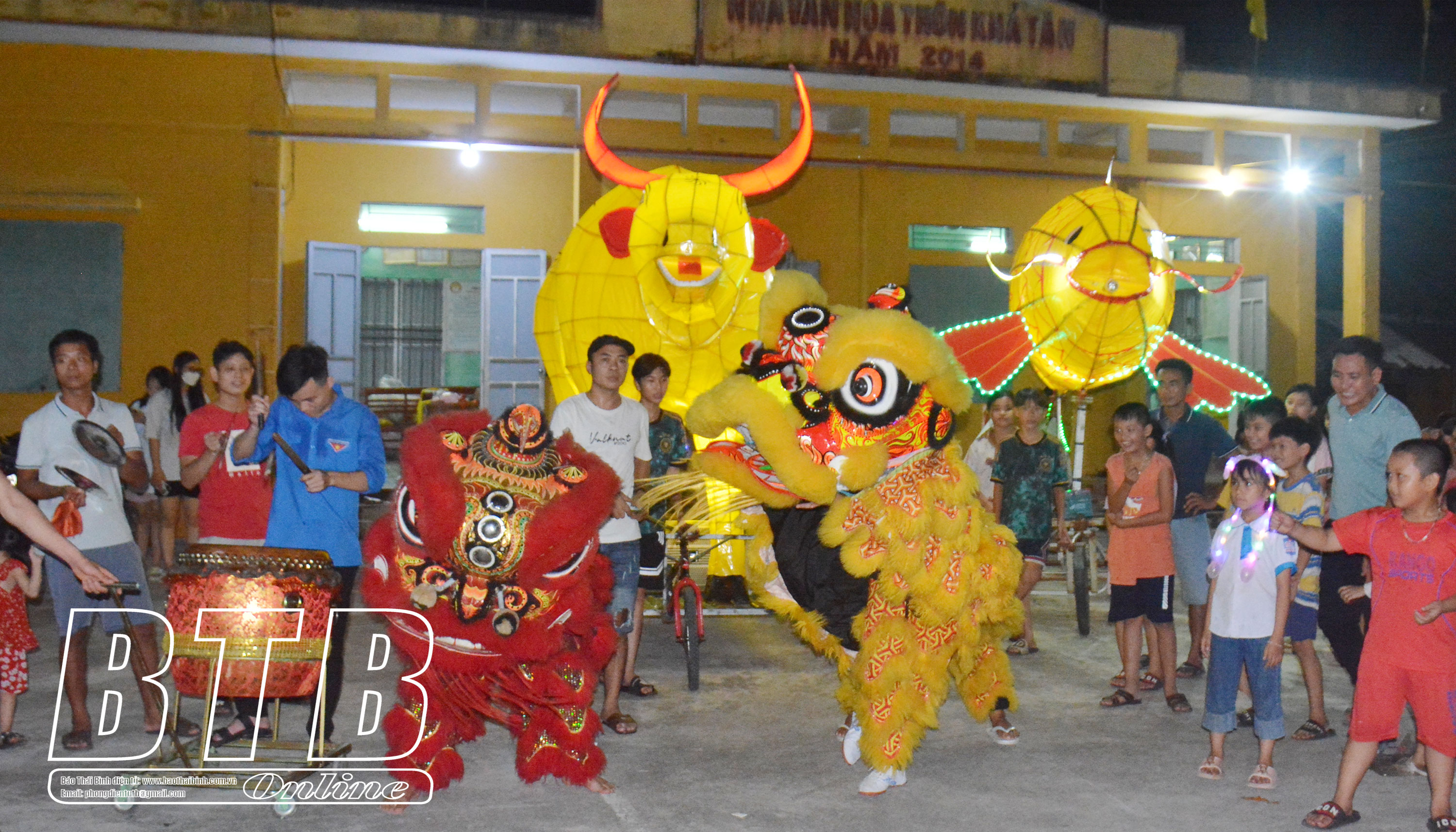 Tại thôn Khả Tân, xã Duyên Hải (Hưng Hà) công tác chuẩn bị cho tết Trung thu cũng được gấp rút thực hiện. Năm nay Chi đoàn Thanh niên thôn làm mô hình đèn trung thu hình con trâu dành tặng các em nhỏ.