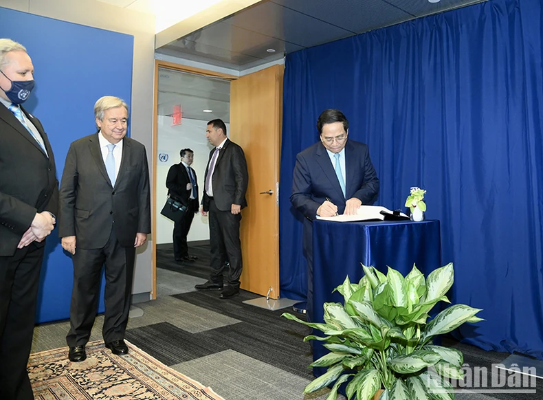 Nhân dịp này, Thủ tướng Chính phủ Phạm Minh Chính trân trọng mời Tổng Thư ký Antonio Guterres thăm lại Việt Nam.