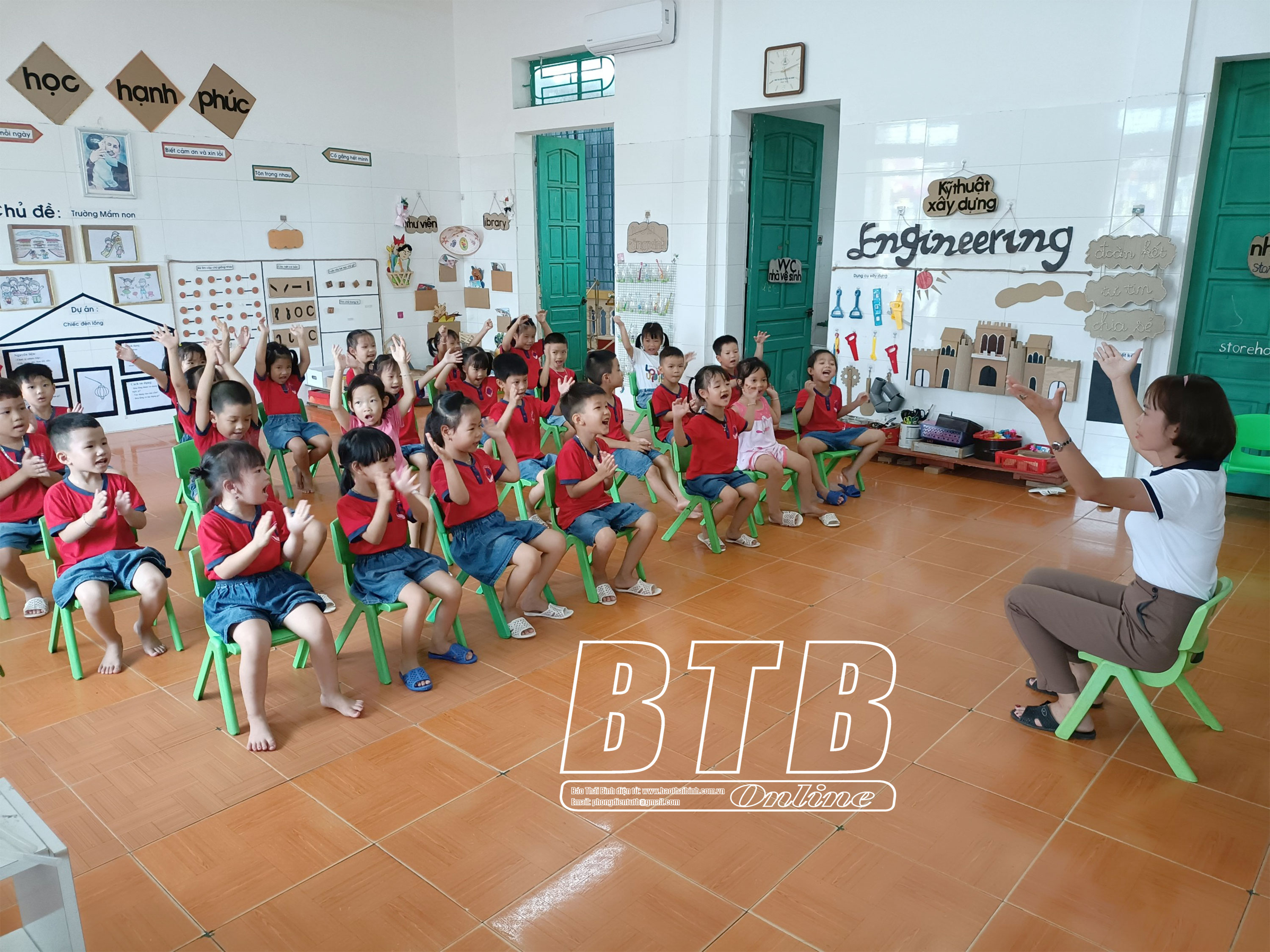 Hoạt động của cô trò Trường Mầm non Vũ Lăng (Tiền Hải) trước bữa ăn trưa.