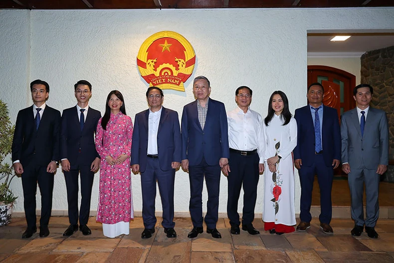 Chiều 25/9, theo giờ địa phương, trong khuôn khổ chuyến thăm chính thức Cộng hòa Liên bang Brazil, Thủ tướng Chính phủ Phạm Minh Chính đã tới thăm trụ sở và gặp gỡ cán bộ, nhân viên của Đại sứ quán Việt Nam và các cơ quan đại diện của Việt Nam tại Brazil.